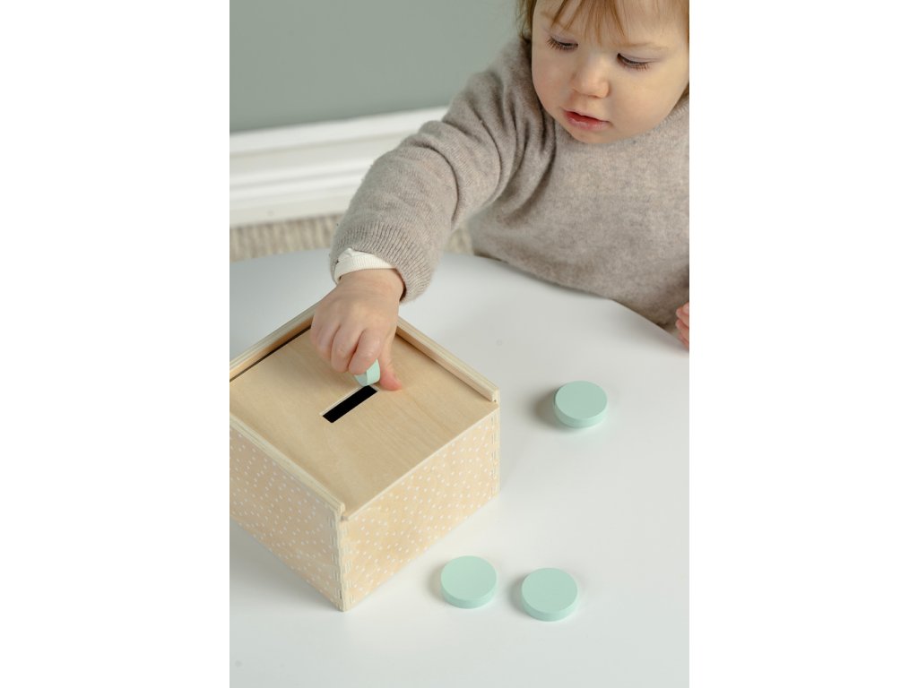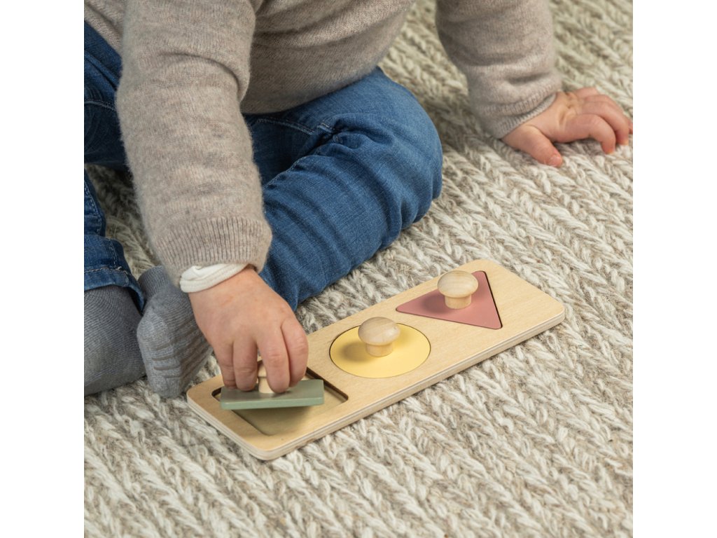 Play and Learn box od Jabadabada obsahuje štyri starostlivo vybrané hračky navrhnuté tak, aby dieťaťu ponúkli hru a tiež podporili jeho rozvoj. Každá hračka má jasný účel a umožňuje dieťatku vo veku 12-18 mesiacov rozvíjať svoje motorické zručnosti a stimulovať svoje kognitívne schopnosti. Tvarové puzzle. Farebný geometrický dizajn pomáha deťom ľahšie rozpoznávať rôzne tvary a farby. Produkt nielen podporuje jemnú motoriku a zručnosti pri spájaní sa, ale tiež trénuje koordináciu ruka-oko a zrakové vnímanie. Veľké drevené gombíky sú navrhnuté tak, aby sa dali ľahko uchopiť malými rúčkami. Zatĺkačka. Batoľatá priťahuje táto nadčasová hračka, kde môžu skúmať umenie kladiva. Hračka stimuluje rozpoznávanie farieb, koordináciu ruka-oko, jemnú motoriku a inšpiruje kreatívnu hru. Vzdelávací box 3 v 1. Tento triediaci box podporuje u detí rozvoj jemnej motoriky, koordinácie oko-ruka, rozpoznávania farieb, kritického myslenia, schopnosti riešiť problémy a koncentrácie. Stohovacie kocky. Táto zábavná stohovacia veža sa skladá z kociek a vedie dieťa, aby sa naučilo balansovať predmety, aby bola veža vo vzpriamenej polohe. Deti si zároveň precvičia koordináciu oko-ruka a zoznámia sa s ranými matematickými zručnosťami, ako sú veľkosť, výška, porovnávanie, poradie a ďalšie.ň Rozmery produktu: 27 x 19 x 14 cm Rozmery balenia: 27 x 19 x 14 cm Materiál: borievkové drevo, preglejka, mdf, tkanina, bavlnená šnúrka Bezpečnosť: Testované a certifikované podľa európskych noriem