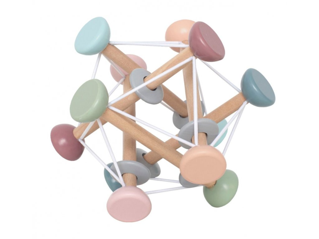 Hračka s aktivitou pre najmenšie deti, ktorá stimuluje veľa rôznych zmyslov. Na drevených kolíkoch sú drevené korálky, ktoré môžete roztočiť. Odporúčaný vek: 1+ Materiál: drevo Rozmery: 16 x 16 x 16 cm