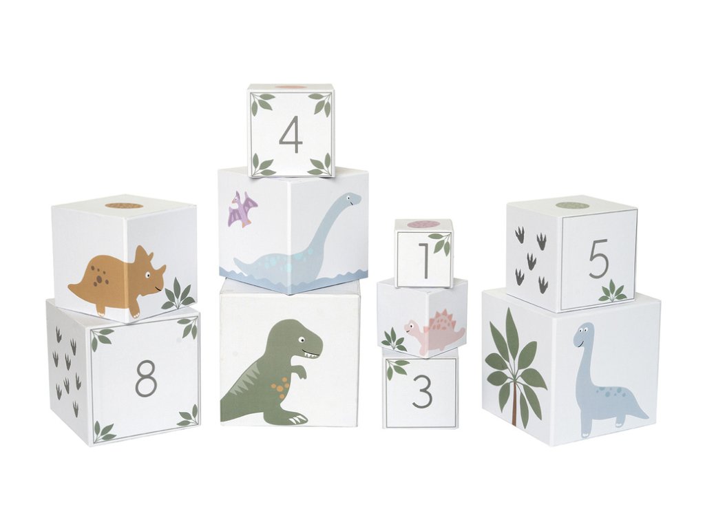 Objavujte, stavajte a učte sa s touto krásnou vežou s motívom dinosaurov! Desať pevných kociek rôznych veľkostí ponúka deťom zábavné možnosti hry – môžu stavať vysoké veže, počítať a objavovať farebné ilustrácie s fascinujúcimi dinosaurami. Každá strana kociek obsahuje iné vzdelávacie prvky – čísla, dinosaurie stopy a hravé obrázky, ktoré rozvíjajú predstavivosť aj jemnú motoriku. Ideálne spojenie hry a učenia podporuje koordináciu a chápanie veľkostí a množstva. Nadčasová hračka v jemnej béžovej farbe, ktorá zapadne do každej detskej izby a bude obľúbená dlhé roky. Informácie o produkte: Rozmery produktu: 110 × 15,5 × 15,5 cm Rozmery balenia: 16 × 21,5 × 16 cm Materiál: kartón (hrúbka 2 mm) Bezpečnosť: Testované a certifikované podľa európskych noriem Obsah balenia: 6 ks