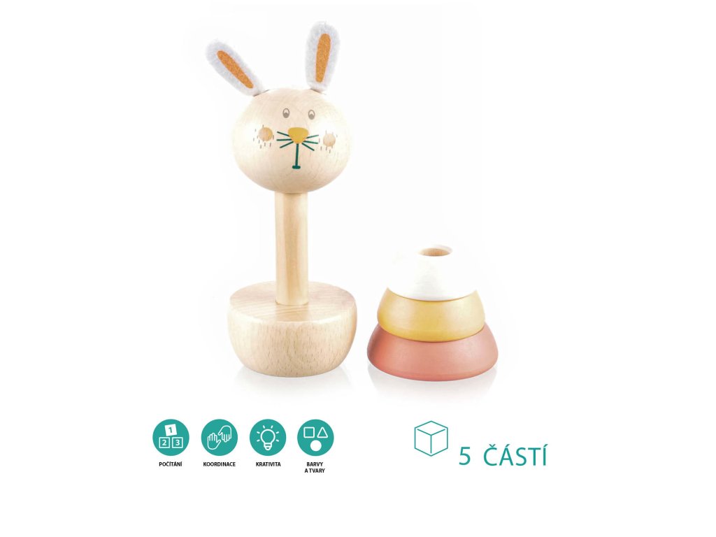 Roztomilý dizajn zajačika dieťa zaujme a pomôže mu hravou formou rozvíjať motorické zručnosti a priestorové myslenie.