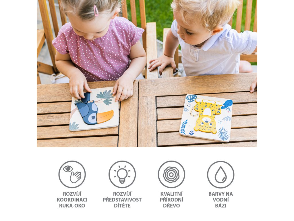 Vďaka odolným dreveným dielikom sú tieto puzzle vyrobené tak, aby vydržali nekonečné hodiny zábavy, a vďaka použitiu netoxických farieb sú pre deti úplne bezpečné. Puzzle tiež pomáhajú rozvíjať jemnú motoriku a koordináciu ruka-oko, a to všetko prostredníctvom zábavnej a vzdelávacej hry.
