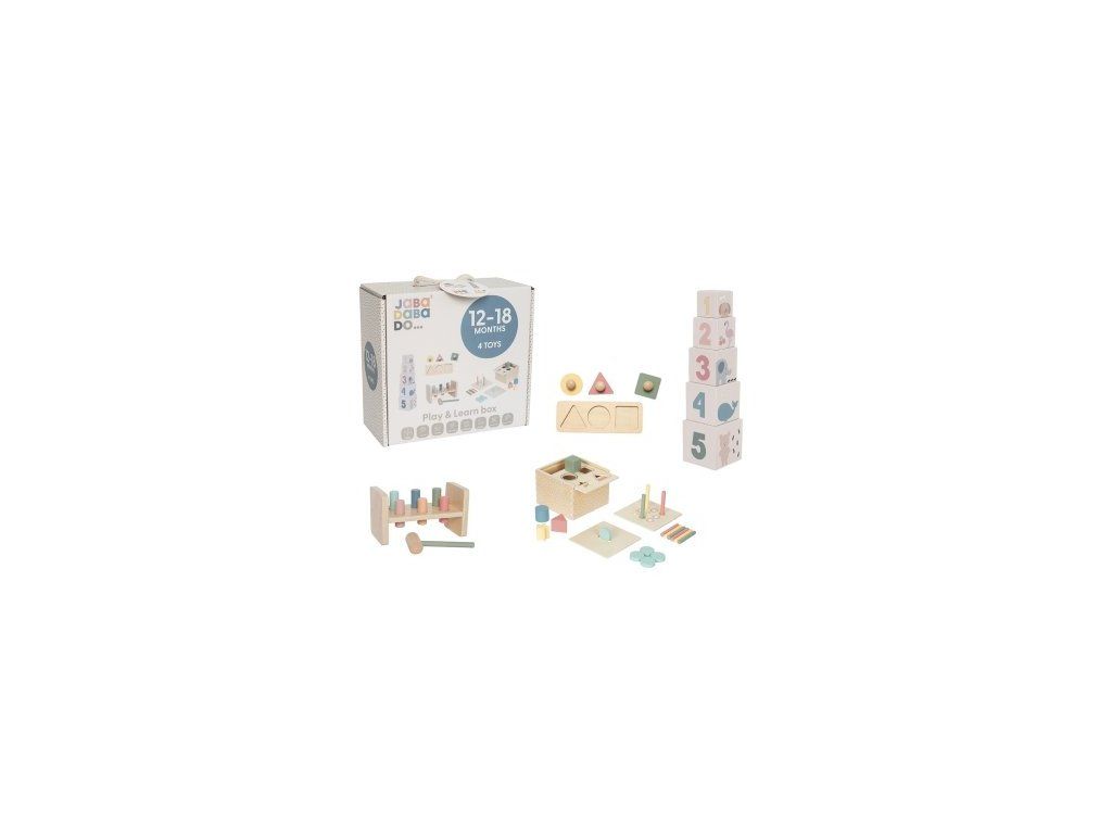 Sada obsahuje čtyři pečlivě vybrané hračky pro zábavnou a rozvojovou hru. Podporuje jemnou motoriku, koordinaci ruky a oka, rozvoj myšlení a poznávání barev a tvarů. Každá hračka má jasný vzdělávací účel, vhodná pro děti od 12 do 18 měsíců.