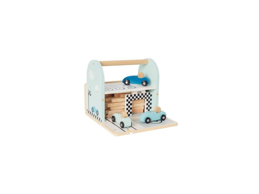 Stylový a hravý dřevěný závodní okruh pro malé závodníky. Oválný okruh s hladkými zatáčkami, silničními značkami a víceúrovňovou rampou pro maximální zábavu. Součástí jsou čtyři barevná autíčka, dopravní kužely a šachovnicová vlajka pro opravdovou závodní atmosféru. Rozvíjí jemnou motoriku, kreativitu a spolupráci při hře.