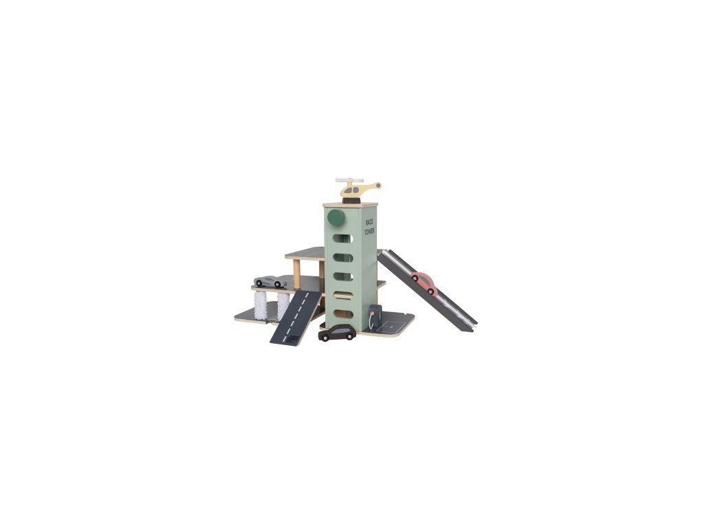 Dřevěná parkovací garáž se třemi patry pro nekonečné možnosti hry. Závodní rampa umožňuje jízdu dvou aut vedle sebe a soutěžení s kamarády. Obsahuje výtah ovládaný volantem, čerpací stanici a myčku aut. Součástí je heliport a vrtulník pro ještě větší herní zážitek.