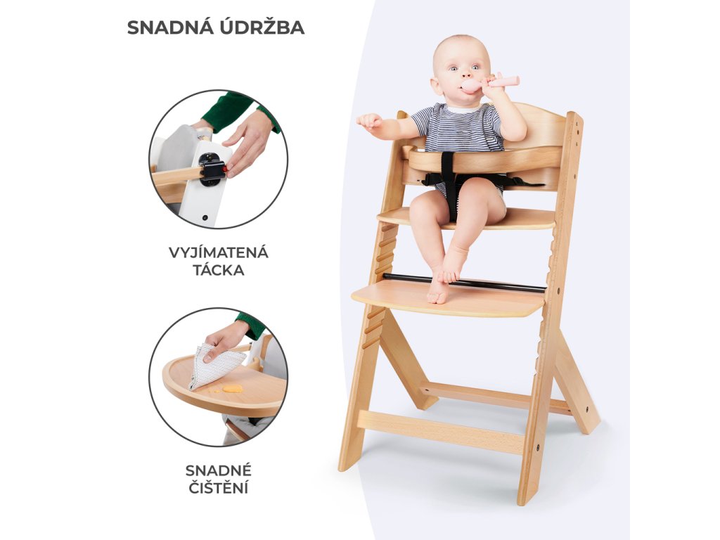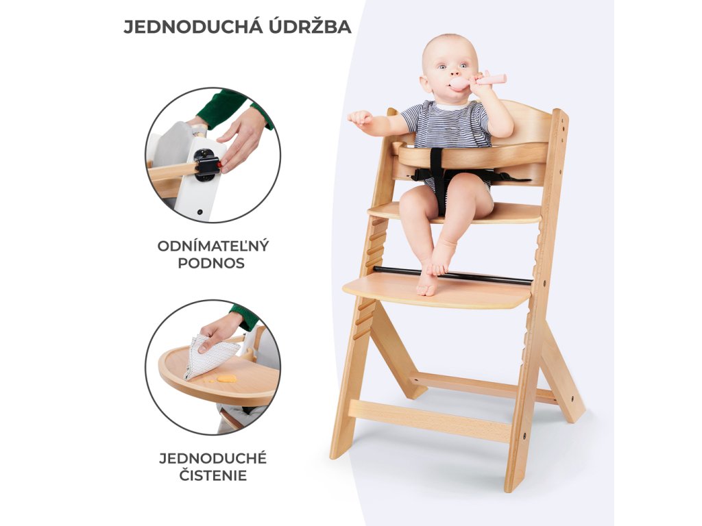 - Masívne bukové drevo a preglejka, ktoré sa používajú pri výrobe vysokej stoličky, poskytujú konštrukcii odolnosť. Vďaka tomu je stabilná a pevná — zostane vo vašom dome na celé roky!