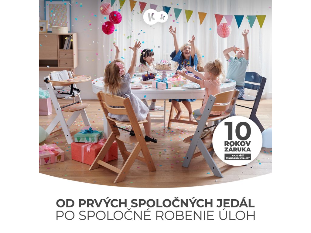 - Bezpečnostné zábradlie vysokej stoličky pre staršie deti, ktoré chcú sedieť spolu so svojimi rodičmi pri vysokom stole.