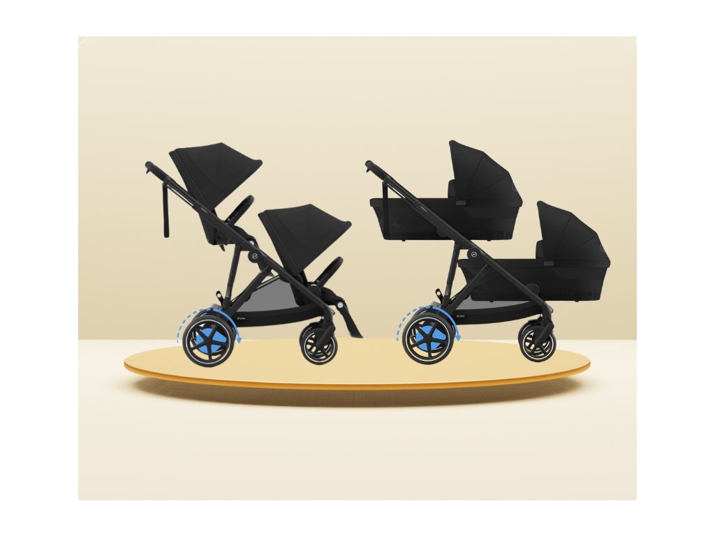 CYBEX Gold e-Gazelle S Lux + Gazelle S Cot S TWIN SET Moon Black+fusak Snogga 2 zdarma