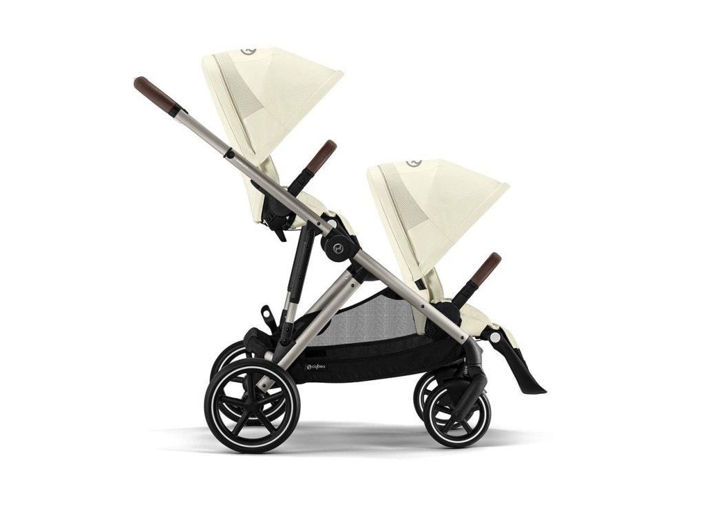 Twin set obsahuje konštrukciu, 2x športovú sedačku a 2x hlbokú vaničku Gazelle S Cot, vďaka čomu je možné Gazelle S využívať ako dvojičkový kočík už od narodenia.
