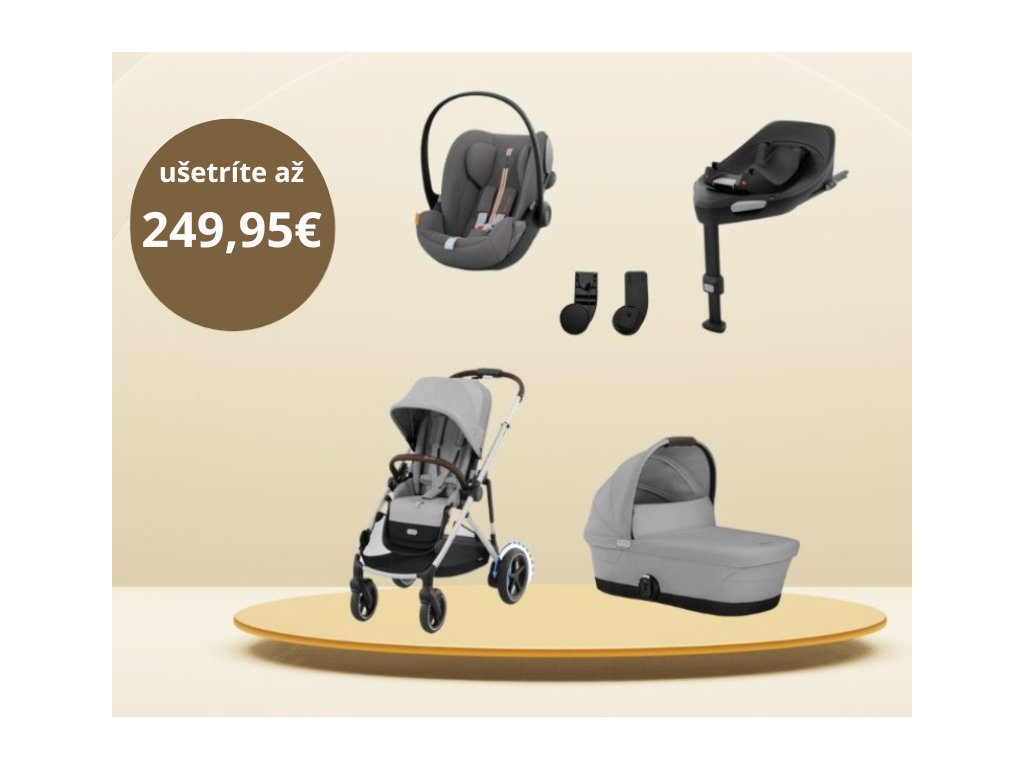 Cybex Gold kombinovaný kočík e-Gazelle + Cloud G PLUS + Base G + adaptéry - Stone Grey