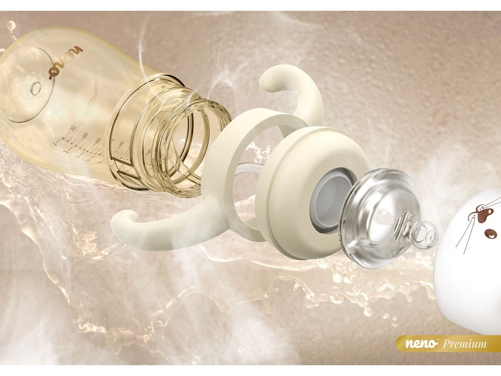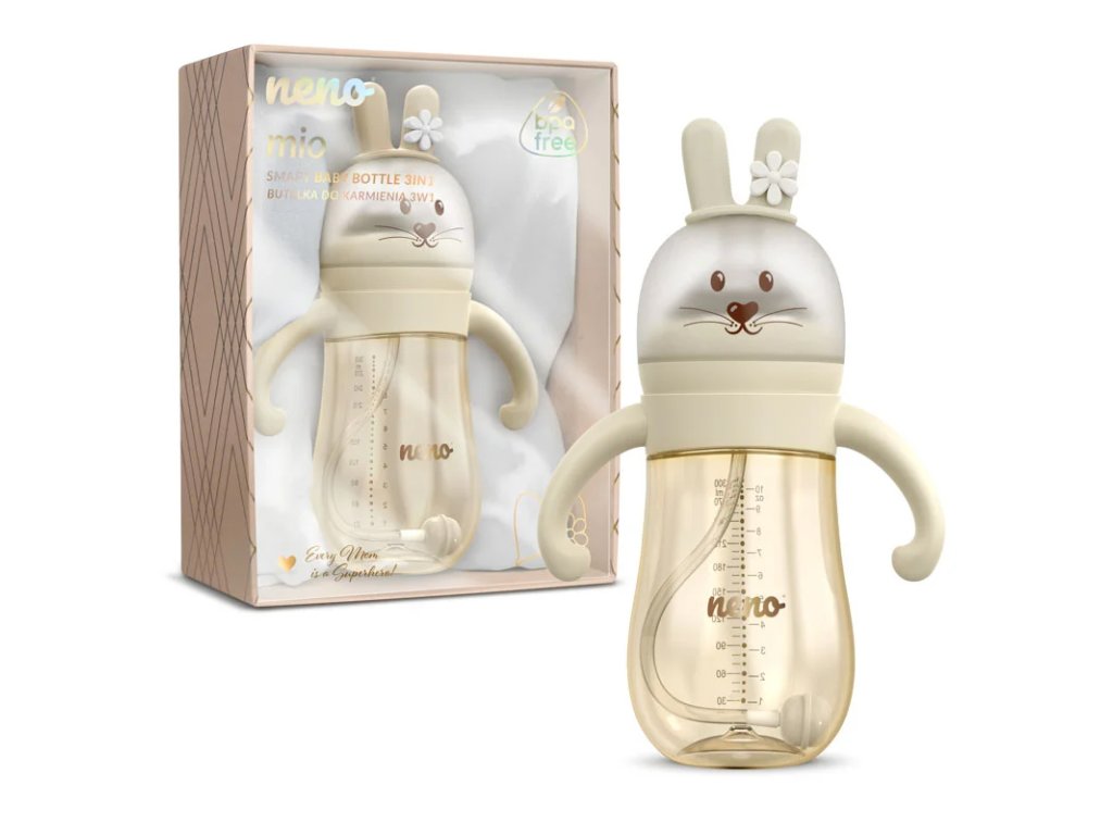 Neno Mio je inteligentná dojčenská fľaša 3 v 1 s cumlíkom proti kolike, ktorý ovplyvňuje prirodzenú polohu jazyka. Je ideálna na každodenné kŕmenie a pri rozširovaní jedálnička vášho bábätka. Je vyrobená z PPSU materiálu, ktorý je odolný voči mechanickému poškodeniu. Má špeciálny prietokový systém s otvorom v tvare krížika, ktorý možno použiť na podávanie mlieka, vody, čaju, šťavy a iného tekutého jedla.