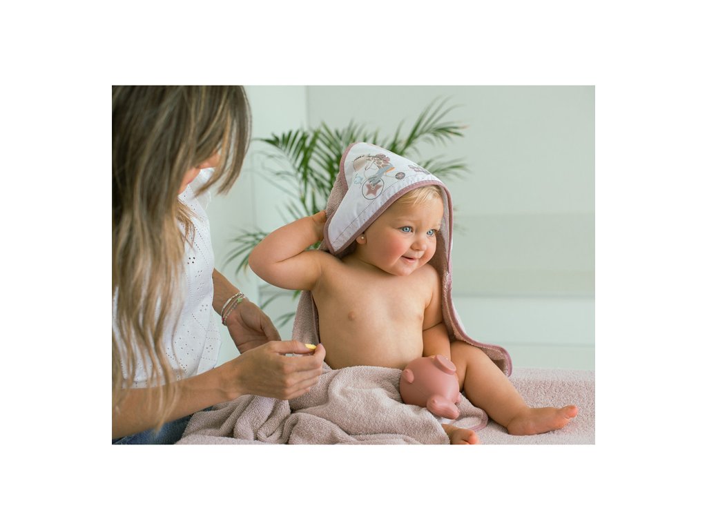 Deti sa po kúpaní vo vaničke alebo bazéne môžu zabaliť do hrejivé osušky a jej komfortná veľkosť im zaistí pocit bezpečia a pohodlia. Čistá bavlna dokonale saje a prináša pocit tepla a sucha. Kapucňa s veselým obrázkom chráni detská ušká a hlavičku pred nachladnutím a dosuší mokré vlásky, navyše pobavia motívy veselých detských kamarátov.