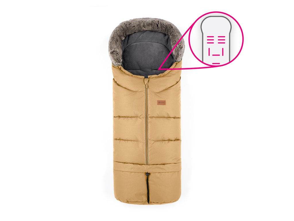 - 4v1 - odopnutím spodnej časti zmeníte veľkosť fusaku na menší, ktorý sa hodí aj do vaničky alebo autosedačky, a pripevnením kožušinky - získate ochranu proti vetru.