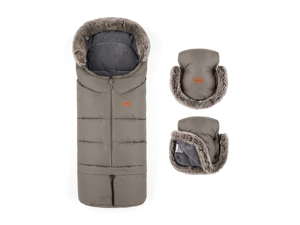 PETITE&MARS Set zimný fusak Arctic 4v1 + rukavice na kočík Furry Mocha Mousse