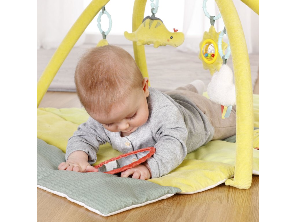 Mäkká aktivita deka podporuje prirodzenú zvedavosť detí už od raného veku. Nechajte deti objavovať svet okolo seba bezpečným spôsobom. Deka je vyrobená z kvalitného a mäkkého materiálu a izoluje chlad od podlahy. Súčasťou deky je hrkálka, pískatko, šuštiaci papier, zrkadlo, zvonček a vibračný modul . Všetky tieto elementy hravo stimulujú zmysly dieťaťa a rozvíjajú fantáziu, zmysly a jemnú motoriku. Závesný hrací oblúk je v dostatočnej výške, aby naň deti dosiahli, aj keď budú ležať na chrbte. Závesné plyšové hračky sú ľahko uchopiteľné aj pre malé detské ručičky.