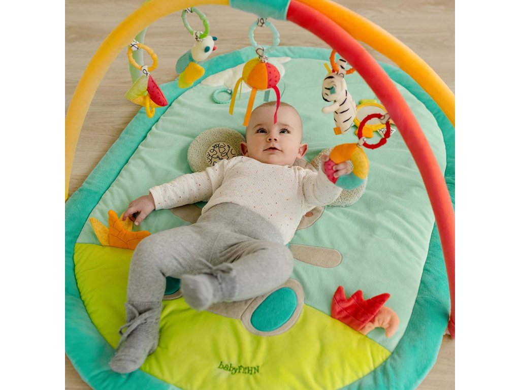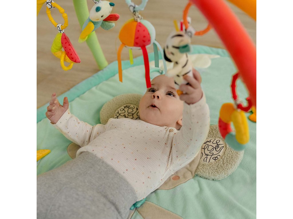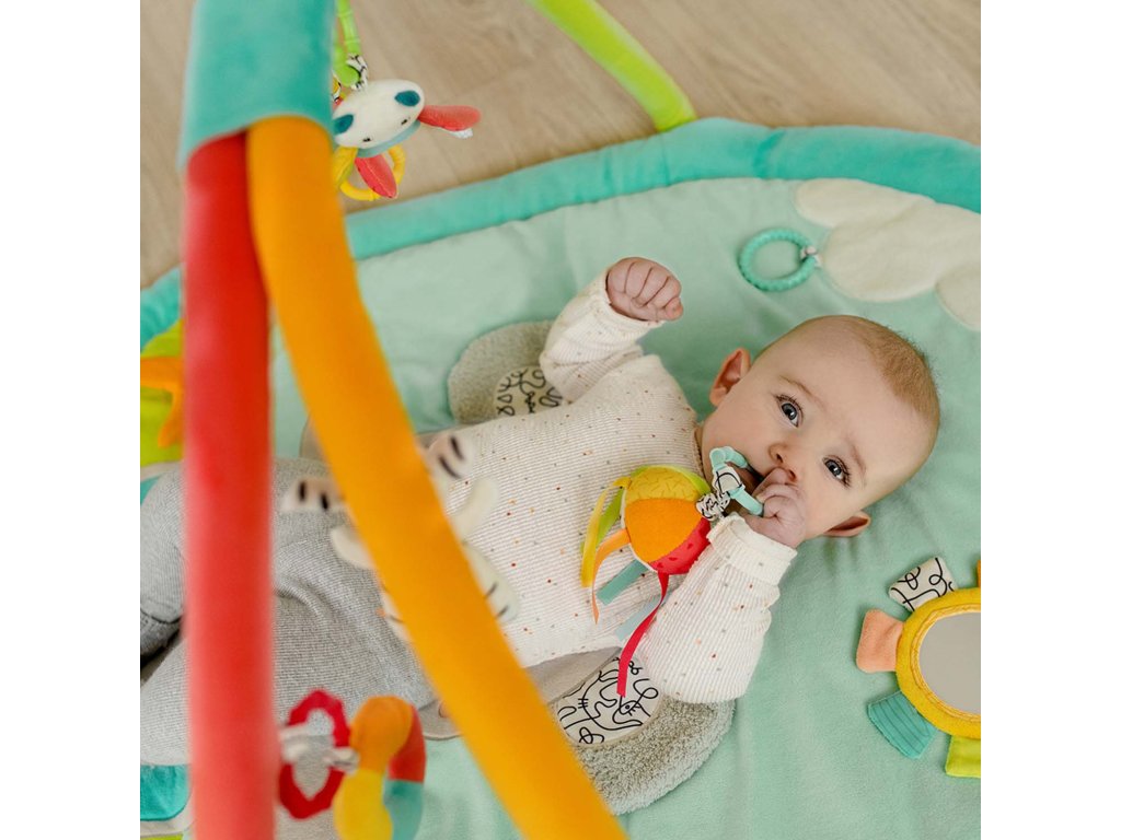 Mäkká, farebná dobrodružná deka Koala s 5 odnímateľnými hračkami na hrazdičke ponúka deťom zábavu pri hraní v rôznych fázach rastu už od narodenia – dokonalá prvá detská deka.