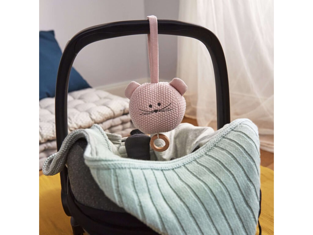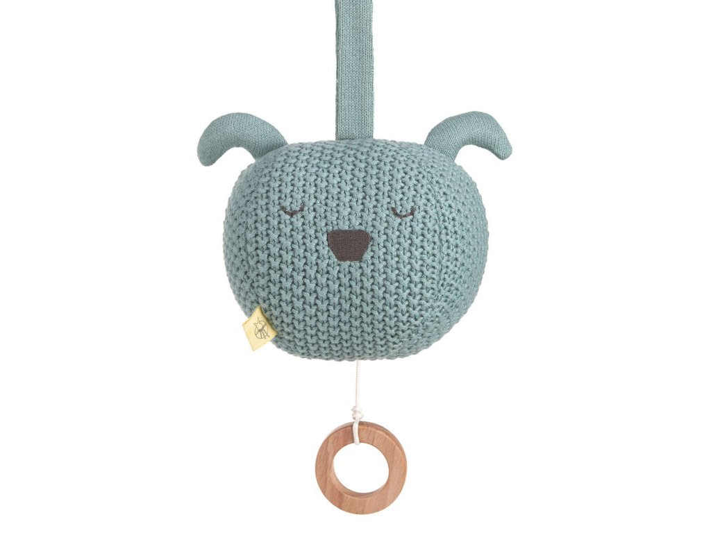 Hudobná hračka jemne ukolíše najmenších ku spánku. Je vyrobená z pleteného materiálu z organickej bavlny. Po vytiahnutí šnúrky hrá jemnú Brahmsovu melódiu Lullaby. Možno zavesiť nad postieľku. Na prednej strane je zobrazená tvár zvieratka, ktoré je hore, na zadnej strane vidíme, že zvieratko už zaspalo. Vhodné pre deti od narodenia do 12 mesiacov. Preventívne zložte hračku, akonáhle sa dieťa začne snažiť zdvíhať na ruky a kolená. •hudobná hračka •motív zvieratka •jemná melódia, ktorá ukolíše dieťa ku spánku •možnosť zavesenia •pranie v práčke na jemný program pri teplote 30° C materiál: 100% organická bavlna 100% polyester, vyrobený z recyklovaného materiálu - výplň rozmery: dĺžka 12 cm, šírka 10 cm, výška 12 cm hmotnosť: 0,132 kg