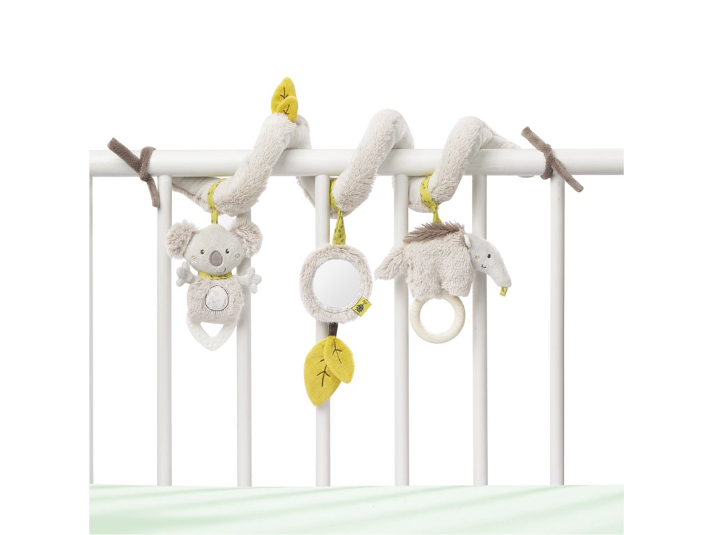 Aktivity špirála Australia je roztomilým doplnkom na hranie pre Vaše zlatíčko. Vďaka svojmu flexibilnému tvaru je možné ju využiť v kočíku, detskej postieľke, na cestách v aute, ale aj všade tam, kde to uznáte za vhodné. Obsahuje niekoľko prvkov, ktoré zamestnajú všetky vnemy dieťatka. Hrkálka zaujme zvedavé detské ušká, zrkadielko láka očká a využitie rôznych materiálov a tiež integrovaného hryzátka, sa postarajú o to, že hračka zamestná naozaj všetky zmysly Vášho maličkého.