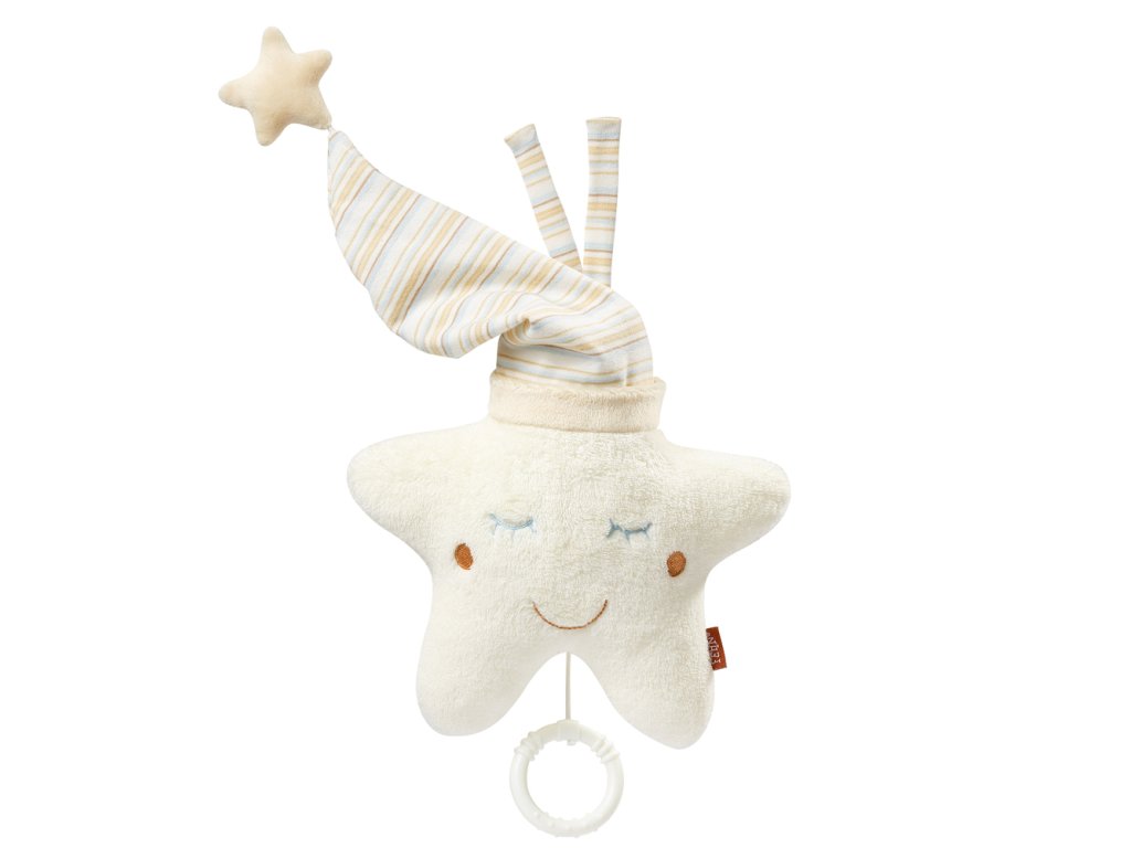Roztomilá hracia hviezdička svojím prevedením nenechá žiadna detská očká bez povšimnutia. Zatvorené očká motivujú dieťatko na uloženie sa na spánok. Hrací strojček je vyberateľný, na zips. Príjemná melódia sa bude šíriť jemne detskú izbičkou a detičkám prinesie sladké sny.