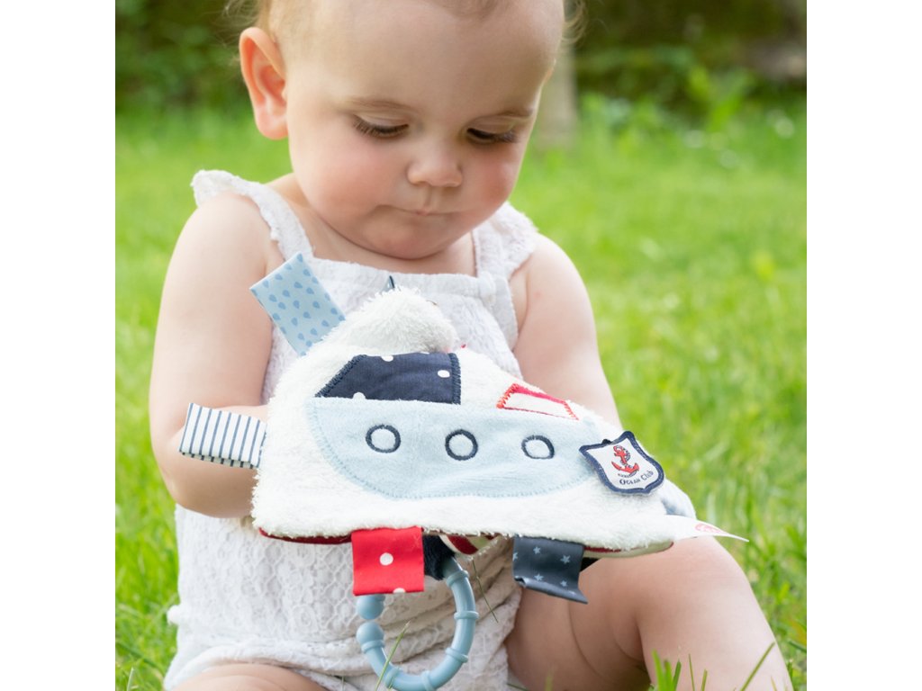 Drobnú hračku Teddy v lodi z kolekcie Ocean Club možno ľahko pripevniť na kočík, detskú autosedačku, ohrádku alebo postieľku, a to pomocou praktického C-krúžku. Rôzne herné funkcie dieťatku vždy prinesú dobrú náladu.