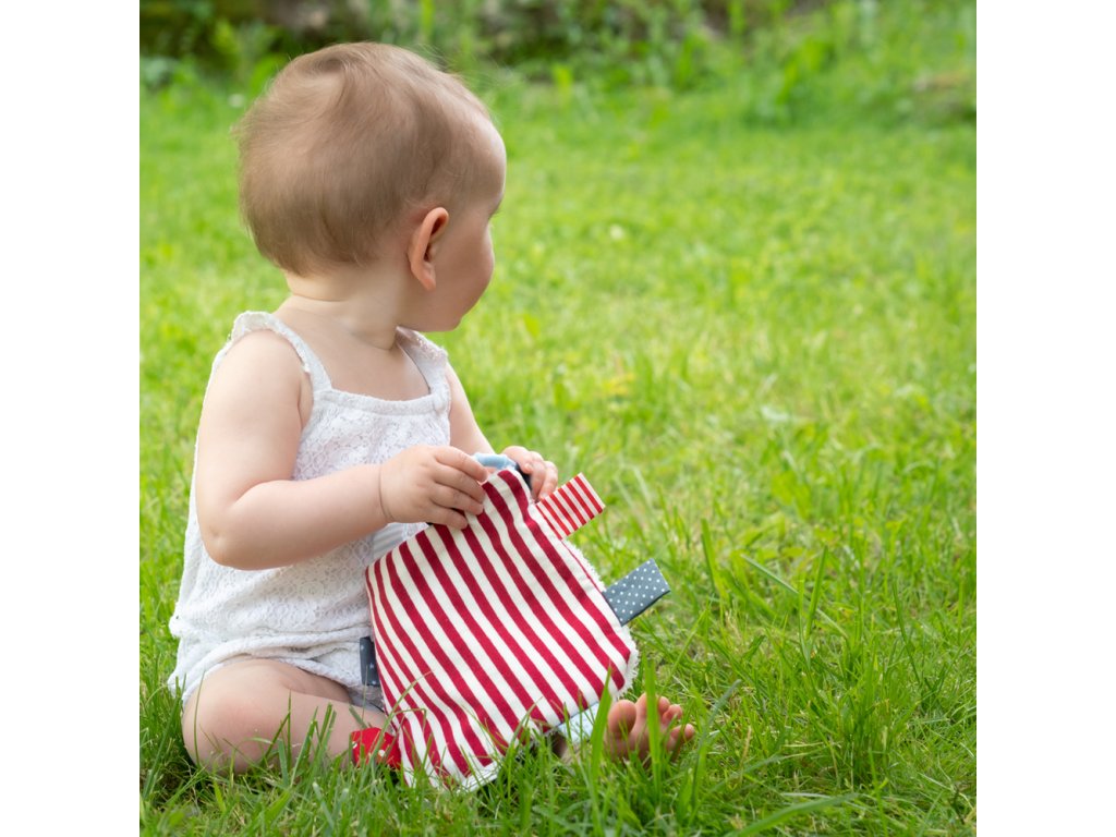 Zvrásnený papier, pískanie a rôzne dotykové prvky podnecujú jeho zvedavosť a trénujú sluch a hmat dieťaťa.