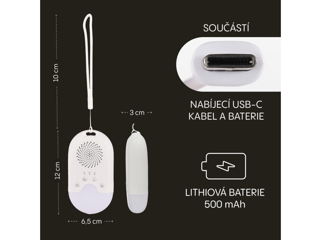 ZOPA Prenosný pripínací modul so svetlom LED, bielym šumom a zvukmi, White