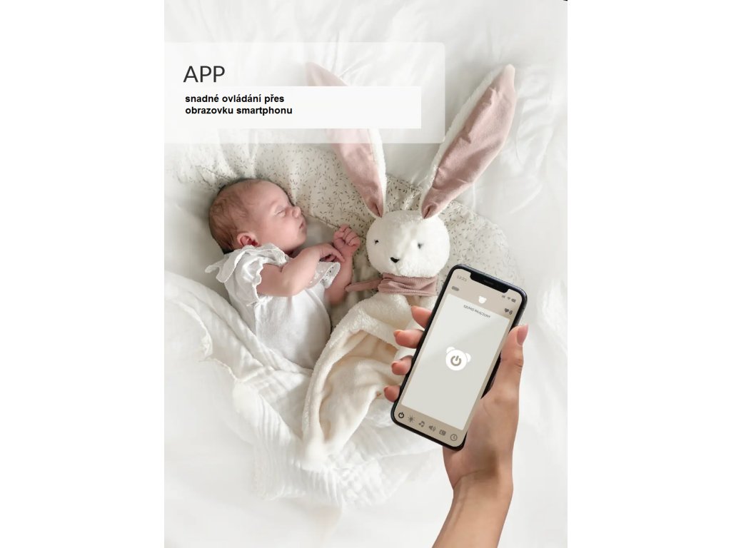 Senzor spánku / 3 šumy / 8 melódií /8 uspávaniek /vibrácie / APP /lampička 2 farby / USB nabíjanie / časovač