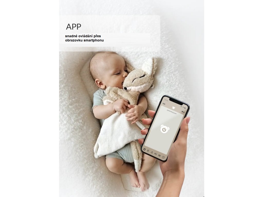 Termofor / senzor spánku / 3 šumy / 8 melódií /8 uspávaniek /vibrácie / APP /lampička 2 farby / USB nabíjanie / časovač