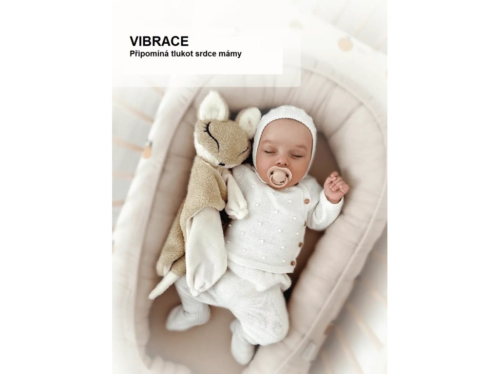 Vibrácie srdcového tepu: Simulujte upokojujúci srdcový tep vašej matky, aby ste svojmu dieťaťu dodali pocit bezpečia.