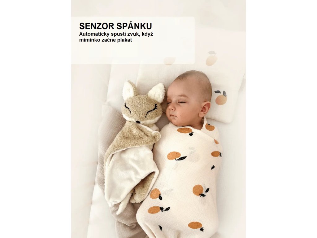 Senzor spánku / 3 šumy / 8 melódií /8 uspávaniek /vibrácie / APP /lampička 2 farby / USB nabíjanie / časovač