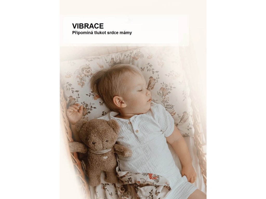Vibrácie srdcového tepu: Simulujte upokojujúci srdcový tep vašej matky, aby ste svojmu dieťaťu dodali pocit bezpečia.