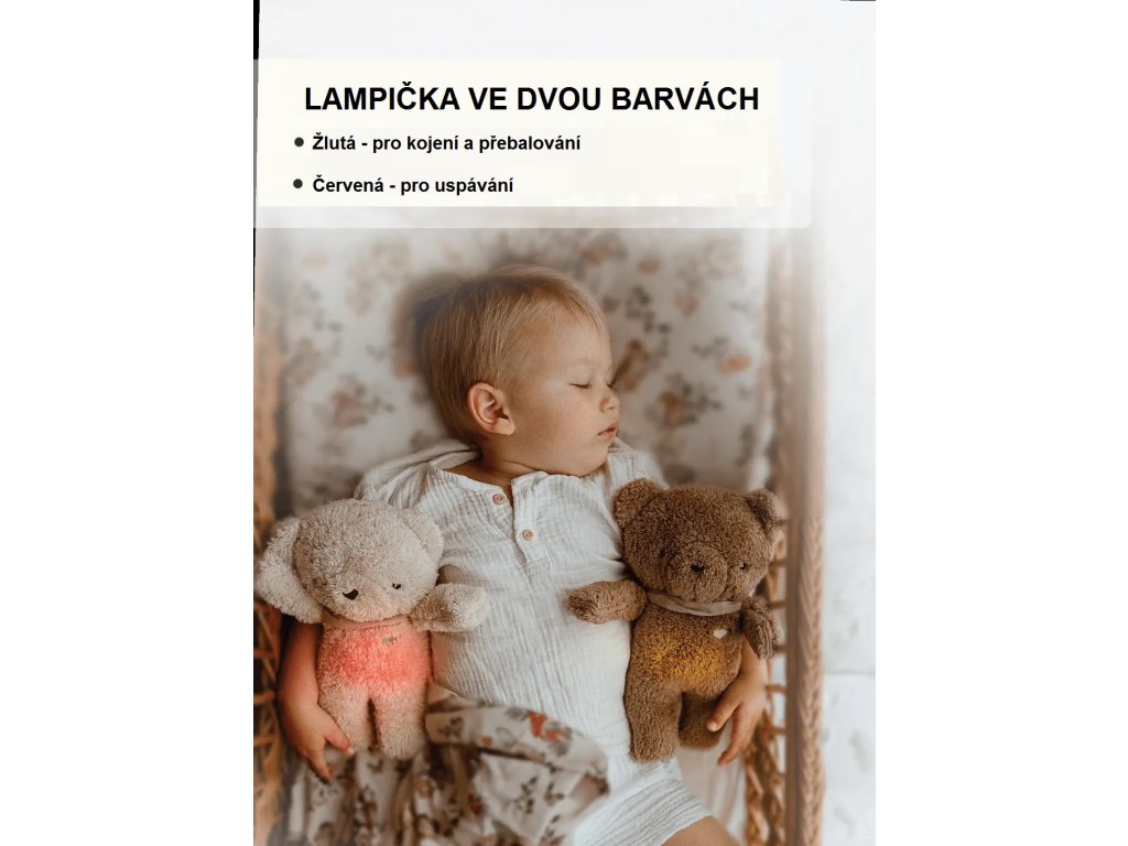 Senzor spánku / 3 šumy / 8 melódií /8 uspávaniek /vibrácie / APP /lampička 2 farby / USB nabíjanie / časovač
