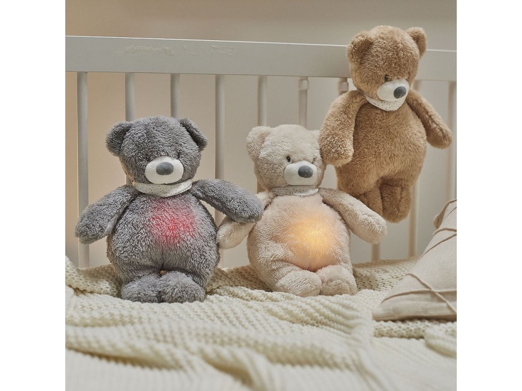 Prítulná plyšová hračka na spanie Nattou v tvare zajačika s vyšívanou tváričkou a jemným podbradníkom. Zajačik na spanie Nattou je krásnej mäkkej kvality s príjemnou výplňou. Spiaci zajačik má v brušku svetielko, ktoré sa môže meniť medzi siedmimi farbami a zvukom, s bielym šumom, morom, tlkotom srdca a dvoma upokojujúcimi uspávankami, ktoré pomáhajú zabezpečiť pokojný spánok. Zvuky spiaceho zajačika sa aktivujú automaticky, keď započuje plač dieťaťa a zvuky automaticky prestanú po 15 minútach. Svetlo spiaceho zajačika vychádza z LED diódy v brušku, takže svetlo je tlmené textíliou zajačika a neprehrieva sa, teda svetlo môže bez problémov svietiť celú noc. Plyšový zajačik má 8-hodinovú batériu a nabíja sa pomocou priloženého USB kábla. Nočné svetielko v tvare plyšového zajačika je dokonalým kamarátom pre tých najmenších. 4v1: - Plyšový kamarát - Nočné svetielko - Melódie - Senzor plaču Odporúčaný vek: 0 m+ Rozmery: výška 32 cm Nedarujte svojmu bábätku len obyčajnú hračku, darujte mu EMÓCIU! Teplé, útulné a bezpečné prostredie, ktorému sa môže vyrovnať len mamičkine bruško. To je NATTOU. Mäkučkí plyšoví kamaráti na zaspávanie, bezpečné hračky pre prvé dobrodružstvá. Objavte svet NATTOU.