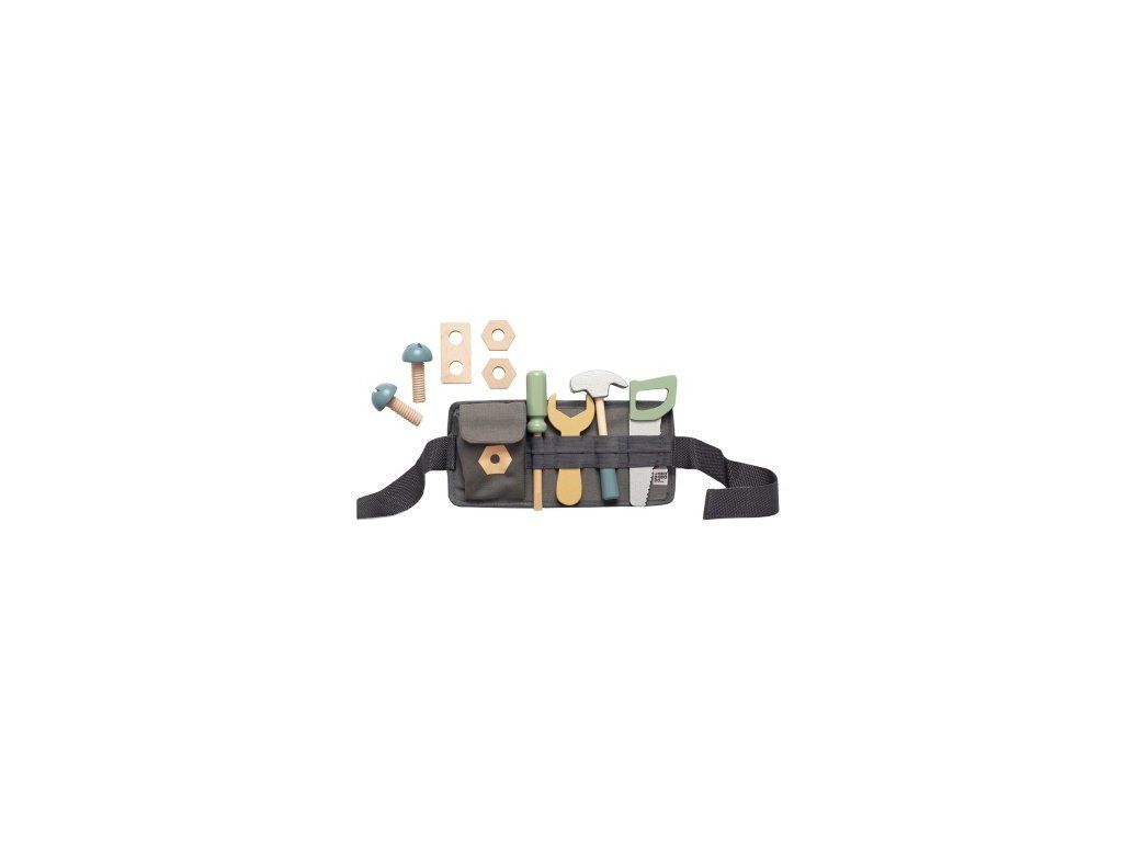 Dětský tesařský opasek Praktický tesařský opasek pro malé kutilky a kutily Obsahuje vše potřebné k „montování“ a hraní na tesaře – hřebíky, kladívko a další doplňky Opasek se zapíná na suchý zip a snadno se připevní kolem pasu Podporuje jemnou motoriku, představivost a kreativní hru Povrch lze čistit vlhkou houbičkou Technické parametry Rozměry produktu: cca 19 × 27,5 × 7,5 cm Materiál: překližka, dřevo, bukové dřevo, textilní pouzdro Věk: od 18 měsíců Bezpečnost: testováno dle evropských standardů, používání pod dohledem dospělé osoby