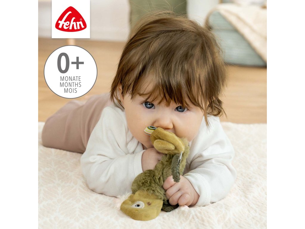 Aktívna hračka s šuštiacim zvieratkom na uchopenie, počúvanie, hranie a vydávanie zvukov. Stimuluje zmysly a motoriku bábätiek, je tak ideálnym spoločníkom pre bábätká už od narodenia a batoľatá.