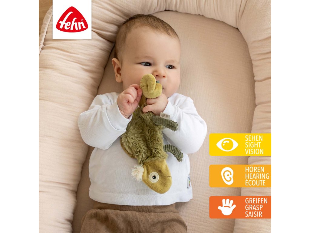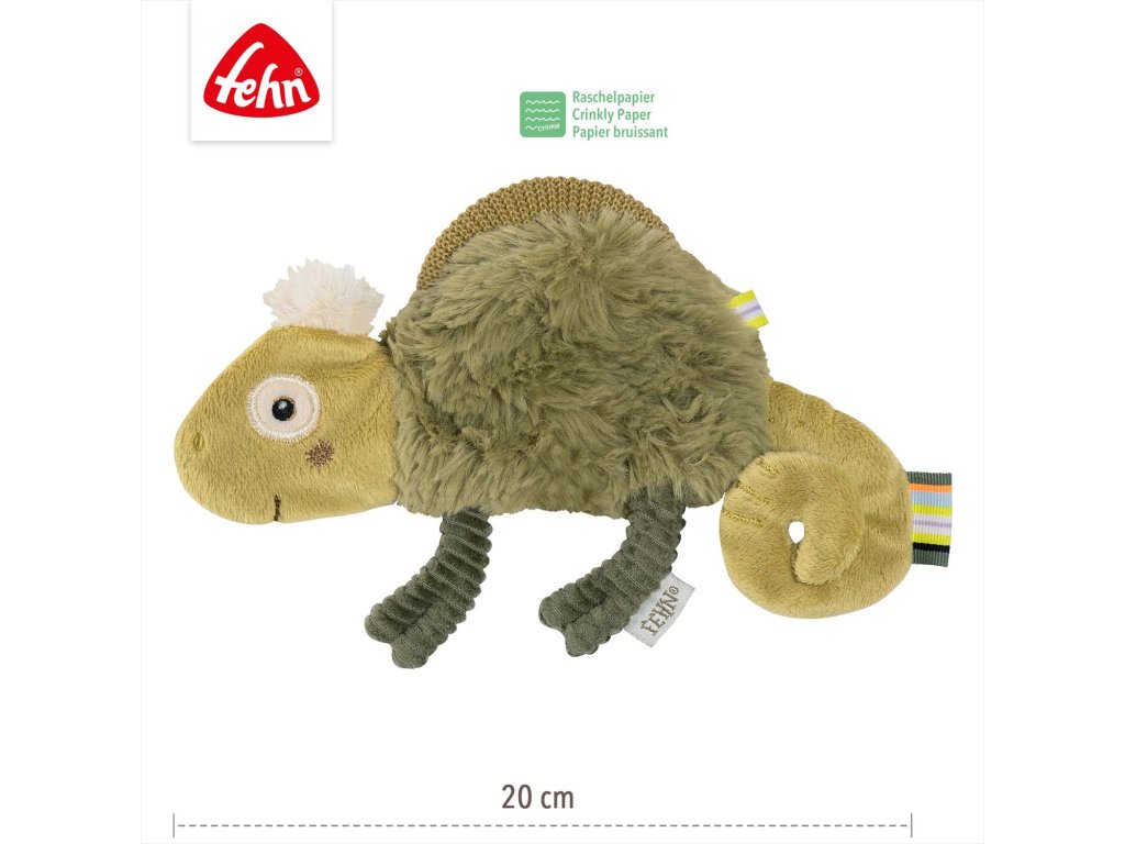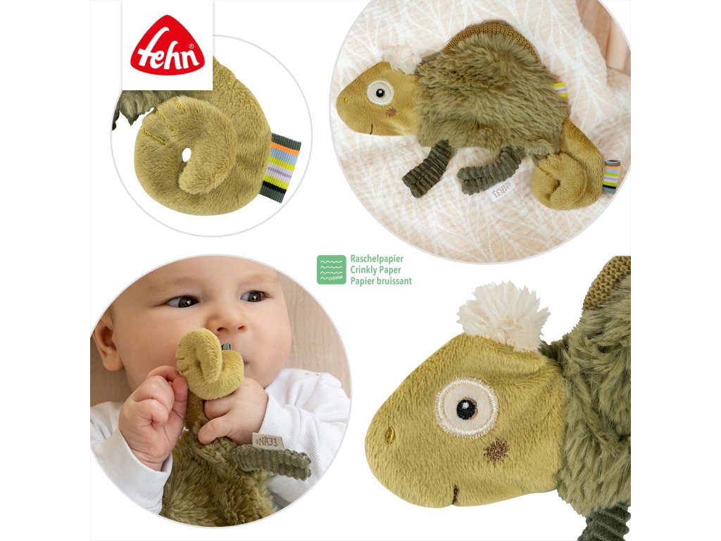 Malý šuštiaci chameleón z kolekcie Lazy, Crazy & Pink hravo stimuluje detský sluch, hmat i úchop. Vďaka rôznorodým materiálom a zaujímavým zvukom ukrytého šuštiaceho papiera sa nikdy neunaví. Bábätká milujú tvar rozkošného chameleóna, ktorého môžu chytiť, dotýkať sa ho, objavovať a maznať sa s ním! Hebký chameleón je ideálnym spoločníkom pre deti pri hraní i snívaní a môžete ho vziať kamkoľvek so sebou.