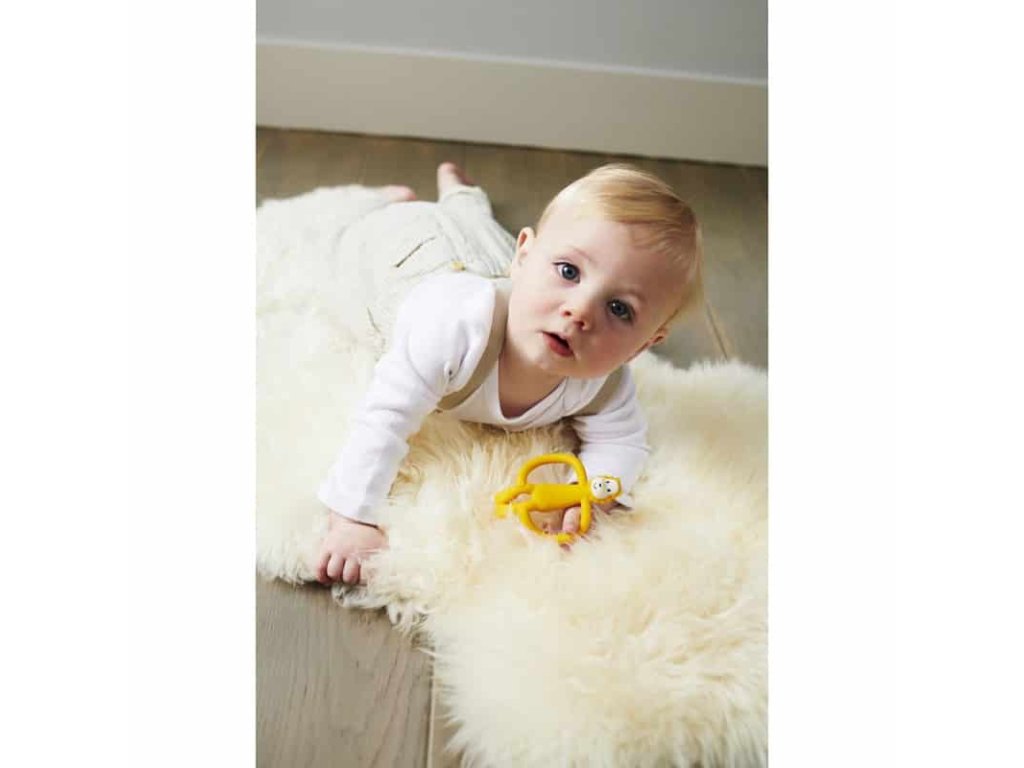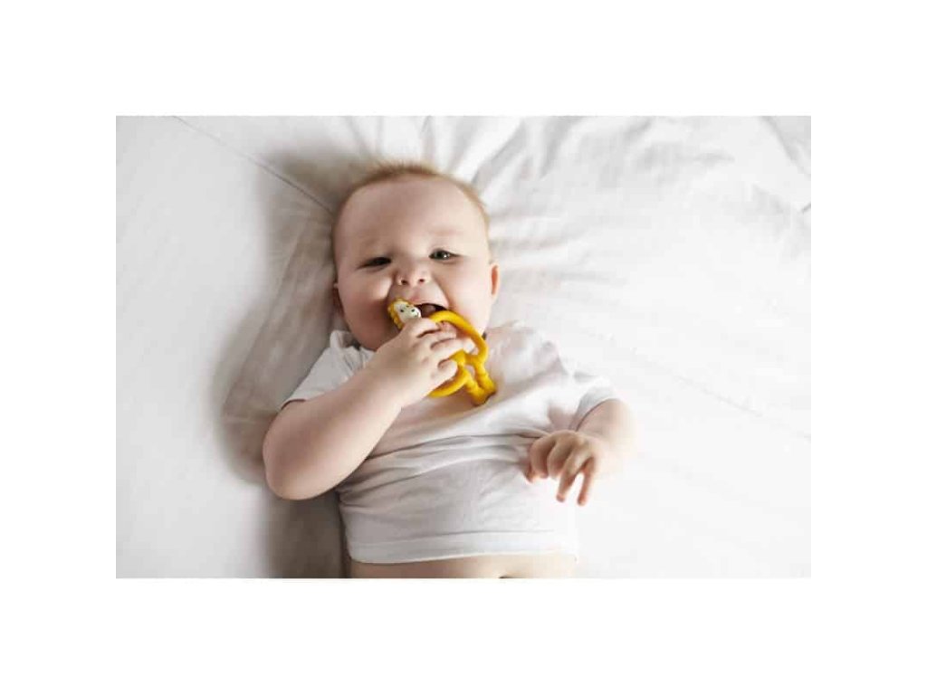 - Zábavné, mäkké, texturované hryzátko sa vďaka svojmu tvaru dostane spolu so zubným prípravkom priamo k zdroju bolesti, pričom zubná kefka zároveň jemne masíruje ďasienka.