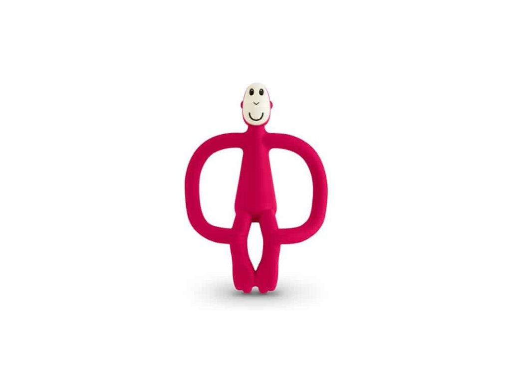 - Zábavná, mäkká, texturovaná opička sa vďaka svojmu tvaru dostane spolu so zubným prípravkom priamo k zdroju bolesti, pričom zubná kefka zároveň jemne masíruje ďasienka.