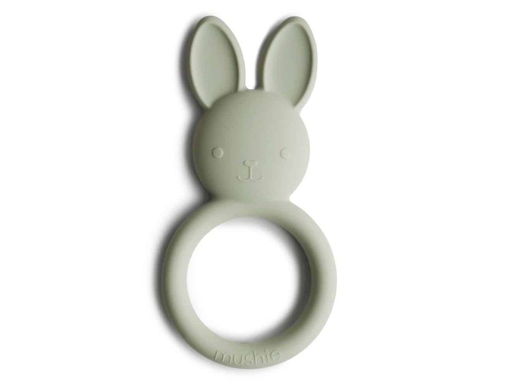 Hryzátko Mushie z potravinárskeho silikónu prináša bezpečnú a pohodlnú úľavu pre bábätká počas prerezávania zúbkov.