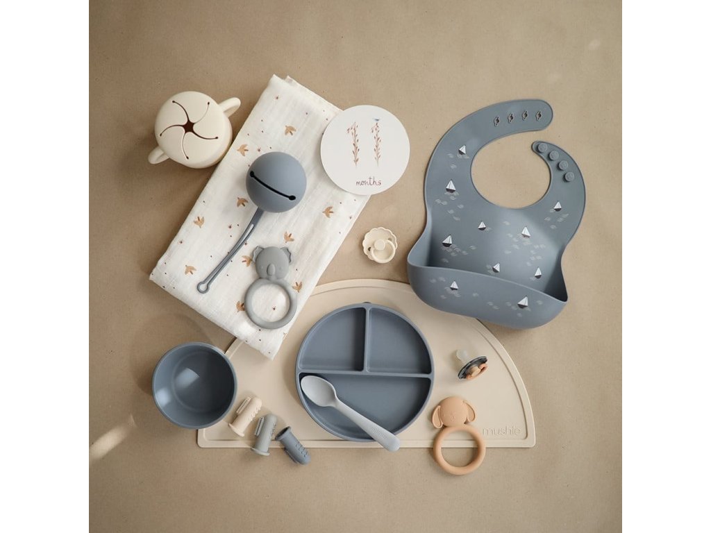 Hryzátko Mushie z potravinárskeho silikónu prináša bezpečnú a pohodlnú úľavu pre bábätká počas prerezávania zúbkov.