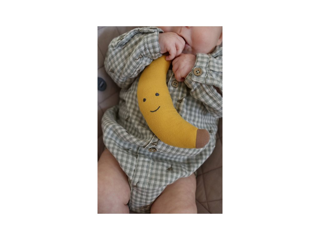 Chrastítko Banán Kto povedal, že banány sú len pre opičky? Toto chrastítko v tvare banánu je veselým a farebným doplnkom do detskej zbierky hračiek. Navrhnuté pre malé rúčky, stimuluje uchopenie a zmysly bábätka zvukom aj tvarom. Skvelé na hranie doma, ale aj na objavovanie v kočíku či postieľke. Informácie o produkte: Rozmery produktu: neuvedené Rozmery balenia: neuvedené Materiál: bavlna, polyester Bezpečnosť: Testované a certifikované podľa európskych noriem Obsah balenia: 6 ks