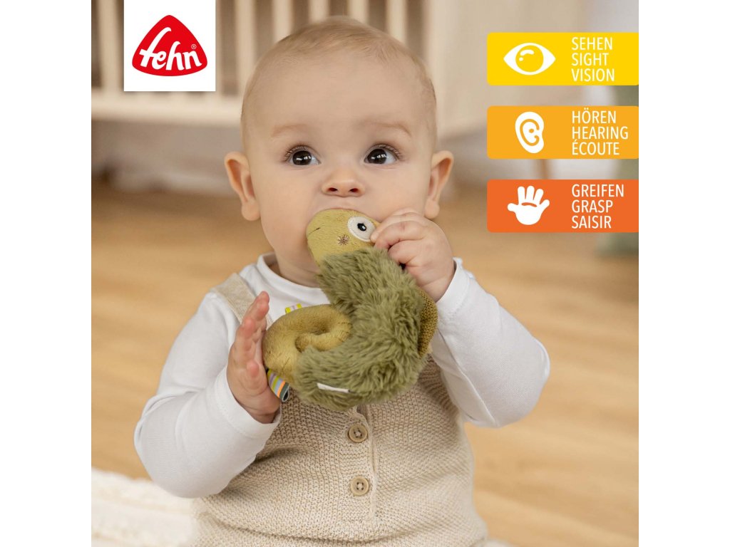 Vďaka zaujímavým štruktúram a podnetným zvukom zabudovanej hrkálky sa dieťatko s touto hračkou nikdy nebude nudiť.