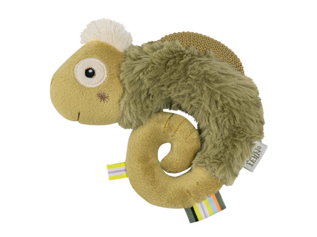 Plyšový chrastiaci krúžok Chameleón z kolekcie Lazy, Crazy & Pink hravou formou stimuluje sluch, hmat aj úchop dieťaťa.