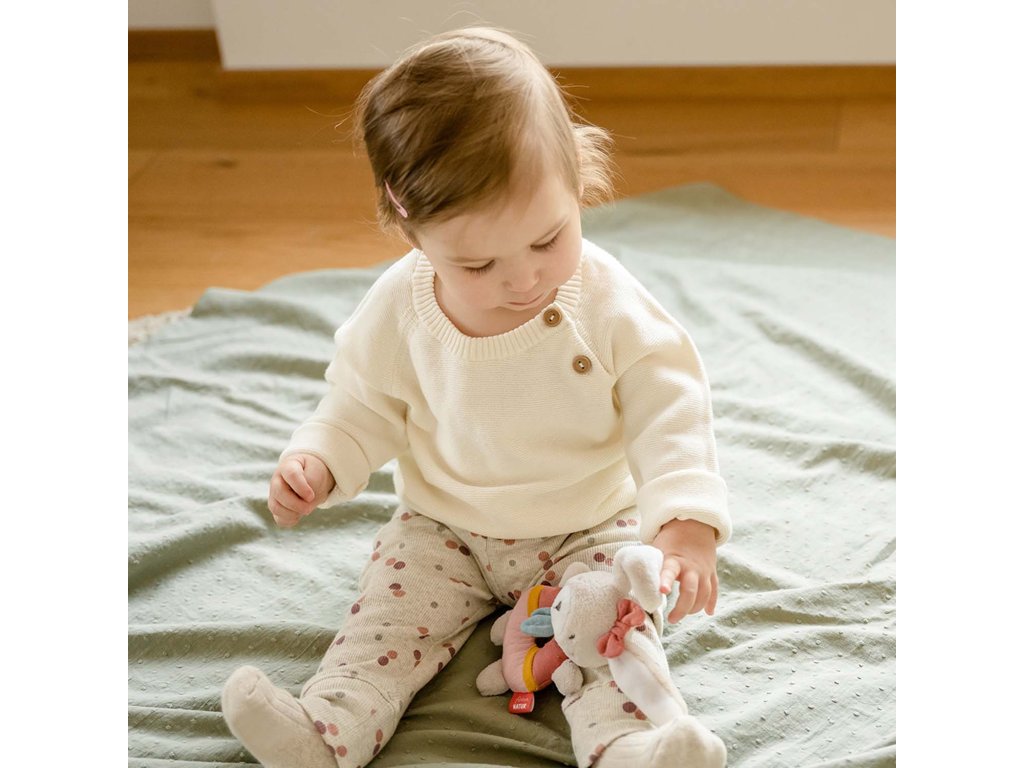 Vypchatý plyšák s hrkálkou podporuje hmat, sluch a tiež motoriku dieťaťa. Deti rýchlo pochopia, čo robiť, aby hračka hrkala. So zaujímavými štruktúrami materiálov a stimulujúcimi zvukmi táto hračka vaše dieťatko len tak neomrzí.