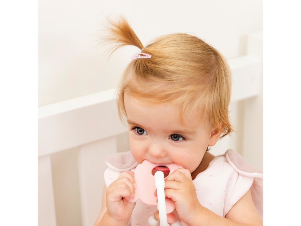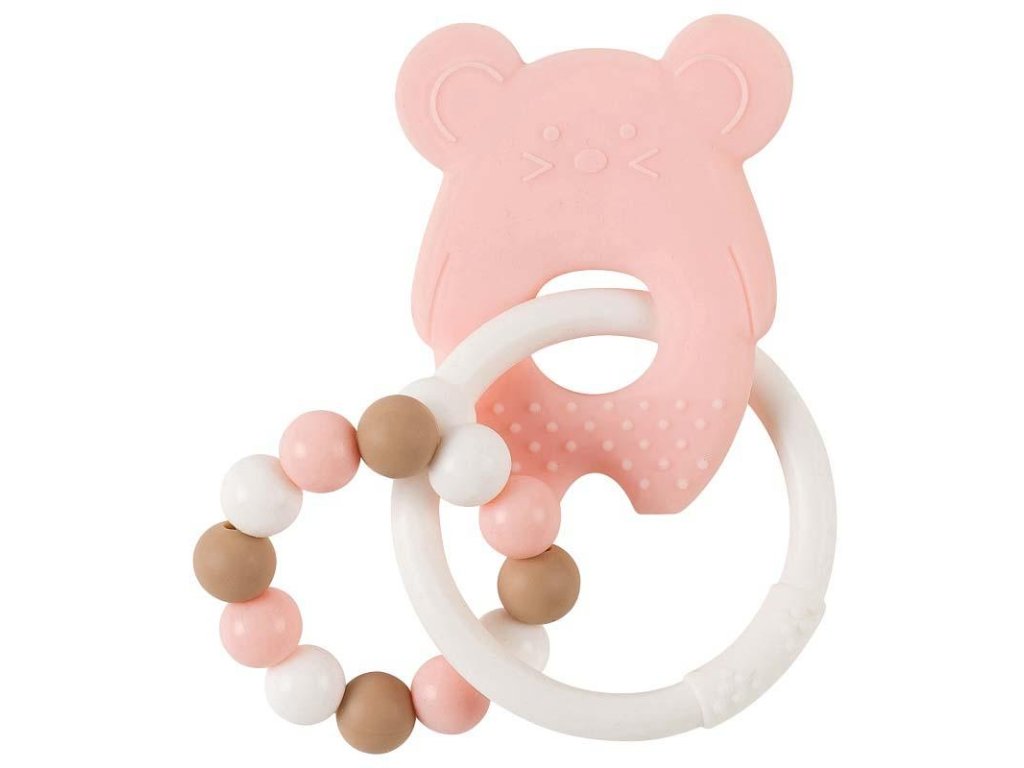 Silikónová hryzačka zložená z troch rôznych častí zmierni bolesť pri prerezávaní sa prvých zúbkov. Môže byť použitá aj ako jednoduchá hrkálka a tiež vďaka svojmu tvaru a dizajnu na rozvoj motorických zručností malých ručičiek. Krásny decentný dizajn.Vhodné od 4 mesiacov.