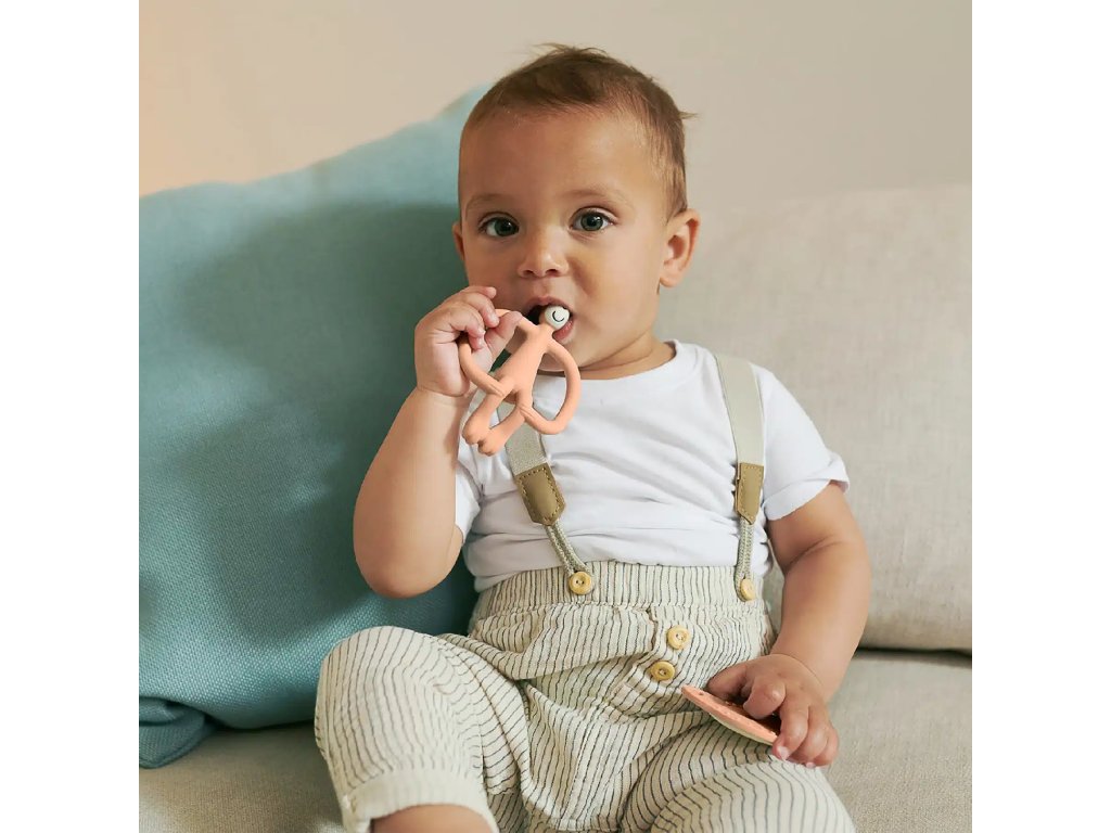 Broskyňové hryzadlo v tvare opičky je zábavné, flexibilné a vďaka textúrovaným výstupkom rýchlo zasiahne miesto bolesti. Plochí opičí kamaráti sú malí, ľahučkí a ideálni do drobných detských ručičiek – skvelí na cesty alebo do tašky. Silikónové prstové kefky sú ideálnou prvou zubnou kefkou pre bábätko – jemné a šetrné k ďasnám.