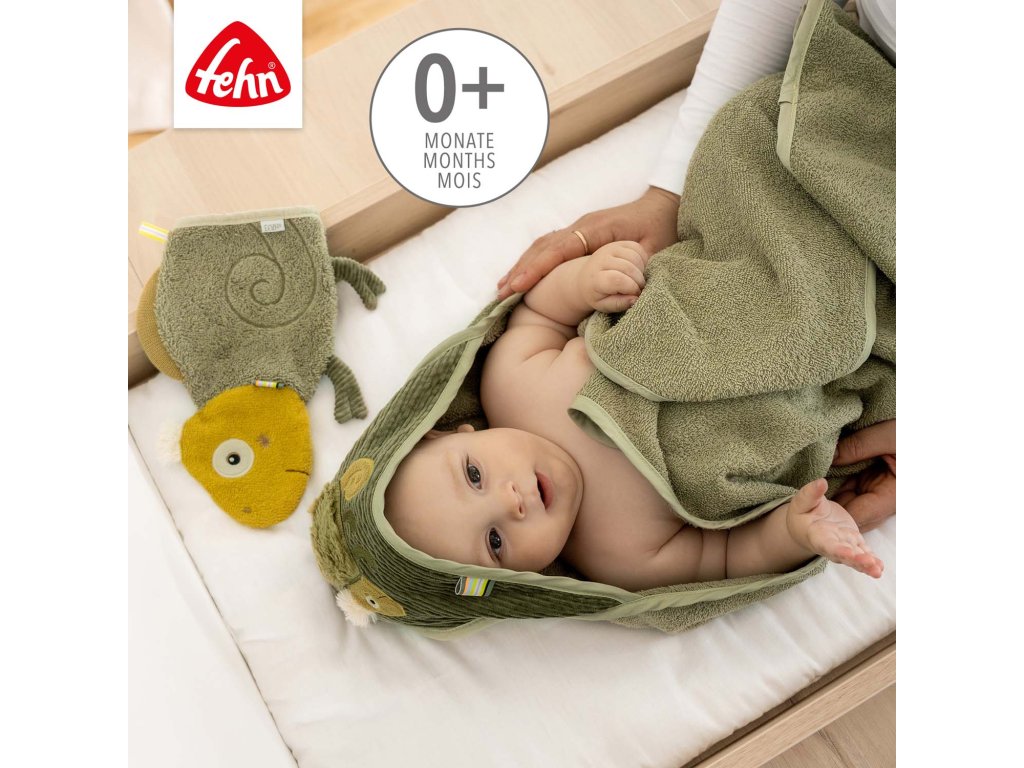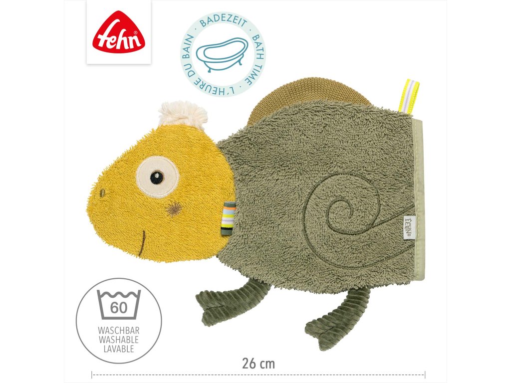 Táto roztomilá žinka s motívom chameleóna z kolekcie Lazy, Crazy & Pink zaručuje maximálnu zábavu pri kúpaní vďaka mäkkému materiálu a hravým detailom. Každodenné umývanie sa stane potešením pre každé dieťa. Žínku možno použiť nielen na kúpanie, ale aj ako bábiku - stačí ju nasadiť na ruku a chameleón ožije. Mäkké froté je mimoriadne šetrné k detskej pokožke a umýva jemne a zábavne zároveň.