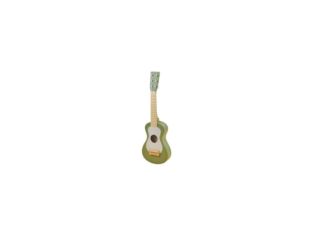 Dřevěná kytara se 6 strunami pro první hudební pokusy dětí. Struny lze ladit podobně jako u skutečné kytary. Podporuje rozvoj hudebního cítění, rytmu a kreativity.
