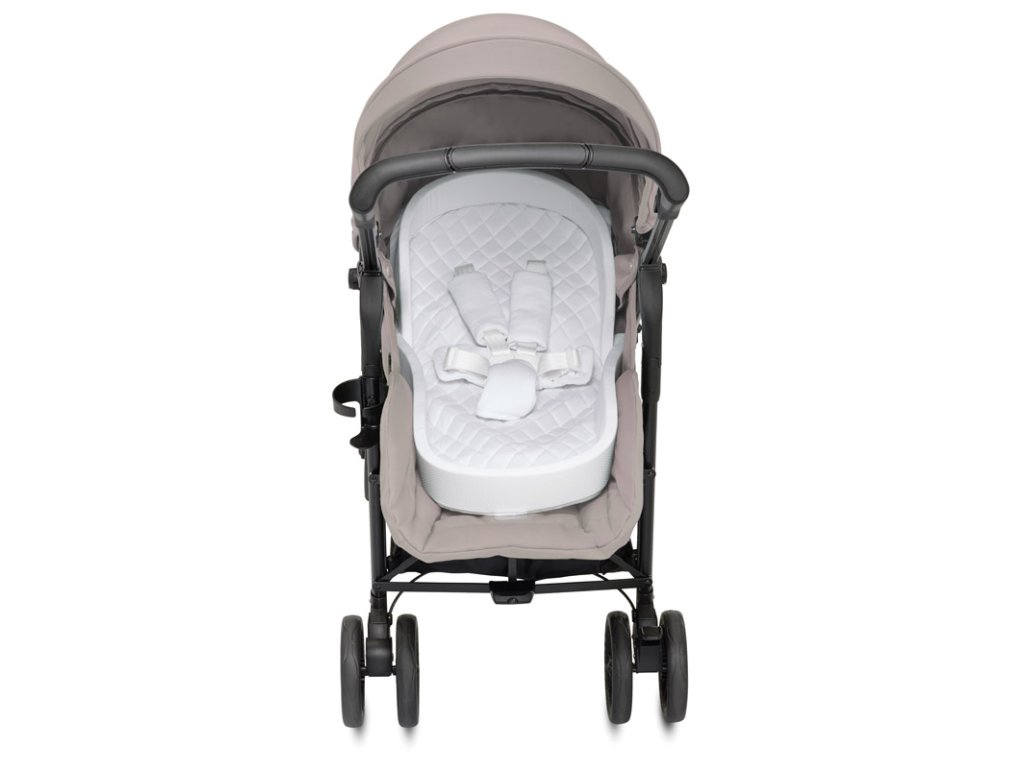 Sada obsahuje univerzálnu zmenšovaciu vložku s vlastnými 5-bodovými pásmi v krémovej farbe, ktorá je vhodná do športového kočíka akejkoveľvek značky. Za hlavičko je vrecko na nasunutie na športovú sedačku a zospodu sa dá takisto pripevniť k bezpečnostným pásom športového kočíka.