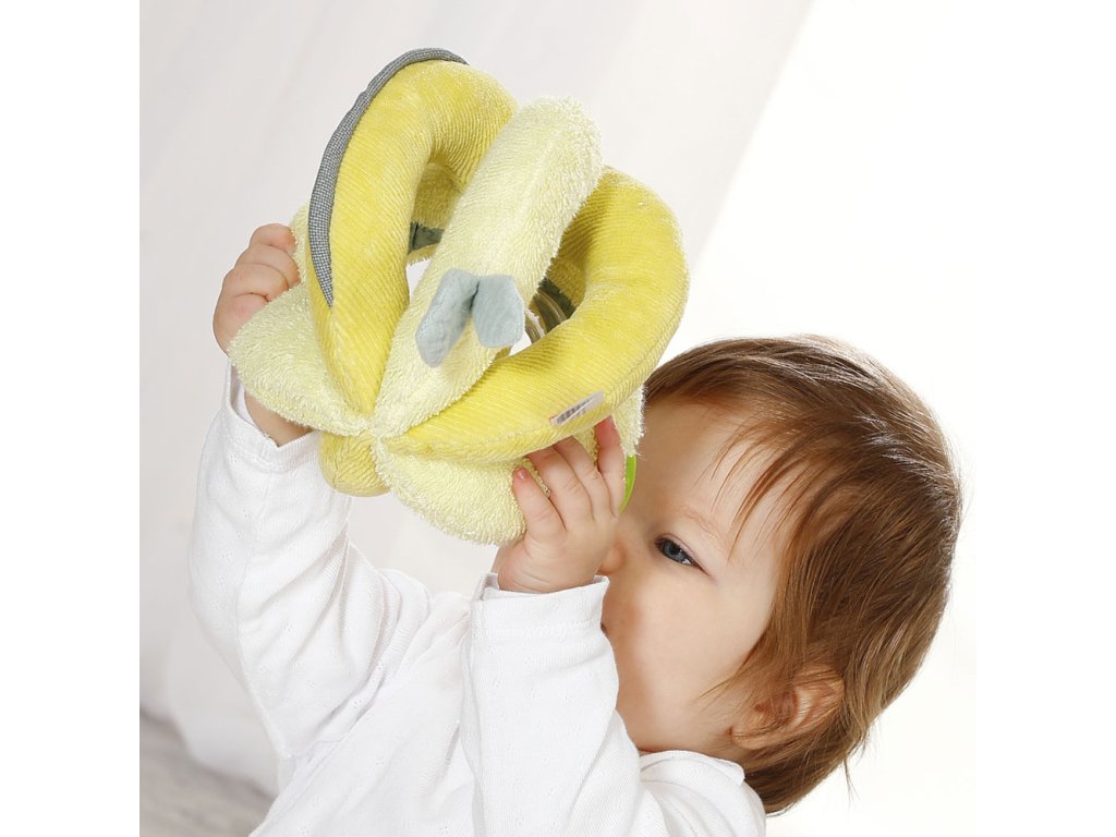 Mäkká lopta je vyrobená z kvalitného menčestra a froté, vyplnená je plyšom. Podporuje prirodzenú zvedavosť detí a priamo nabáda na guľenie, hádzanie a hranie. Balónik je vybavený hrkálkou, šuštiacim papierom a pískatkom . Pri hre podporuje zdravý vývoj motoriky, koordinácie, zmyslov a fantázie . Vďaka praktickej veľkosti je možné loptu ľahko prenášať a zmiestni sa do kočíka, autosedačky aj detskej postieľky.