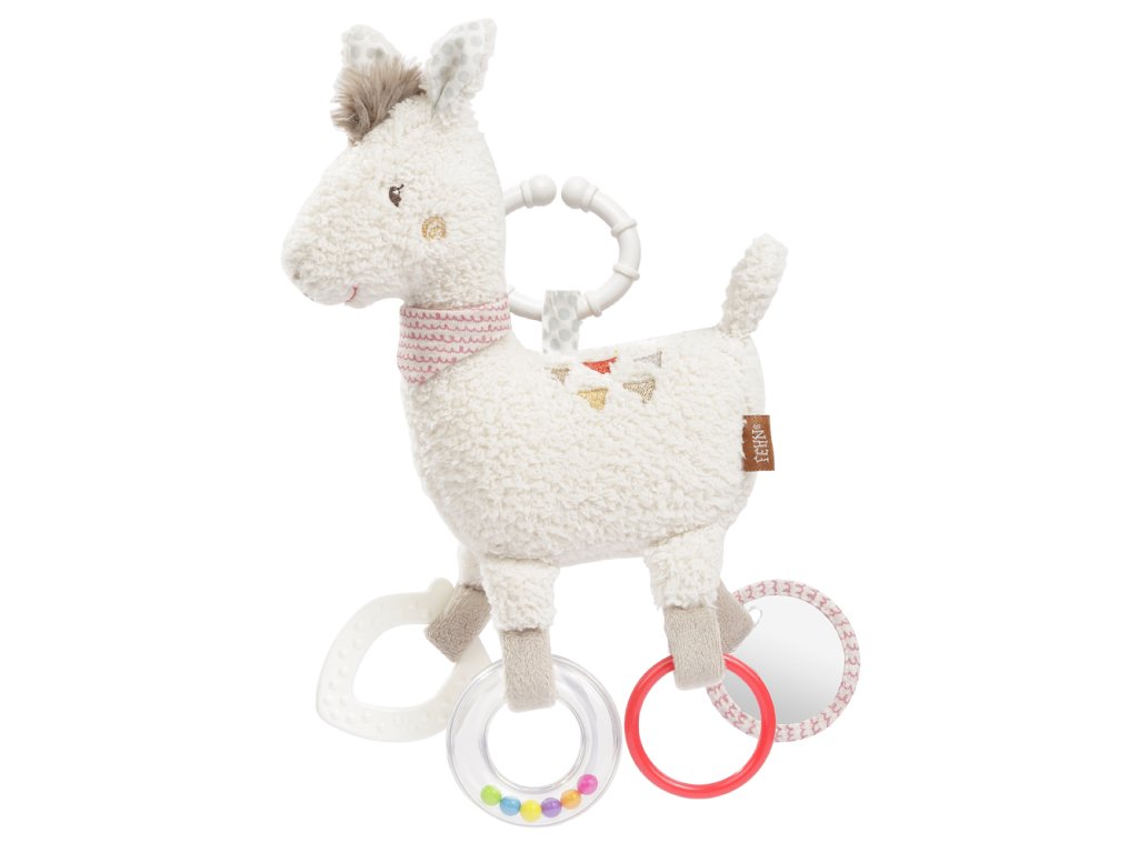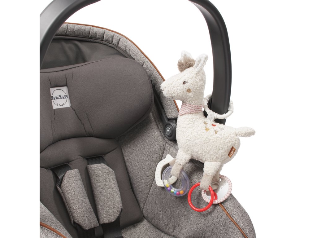 Je to mazlivá plyšová hračka a ochránce v jednom, který se rychle stane dětským kamarádem. Na nohou má zajímavé hračky, podporující motorické dovednosti a poskytující hodně radosti. Neobvyklý tvar a různé materiály poskytují skvělou hmatovou a smyslovou zkušenost. Hračka lama poskytuje nejlepší zábavu na cestách. Rychle se upevní na kočárky a autosedačky.